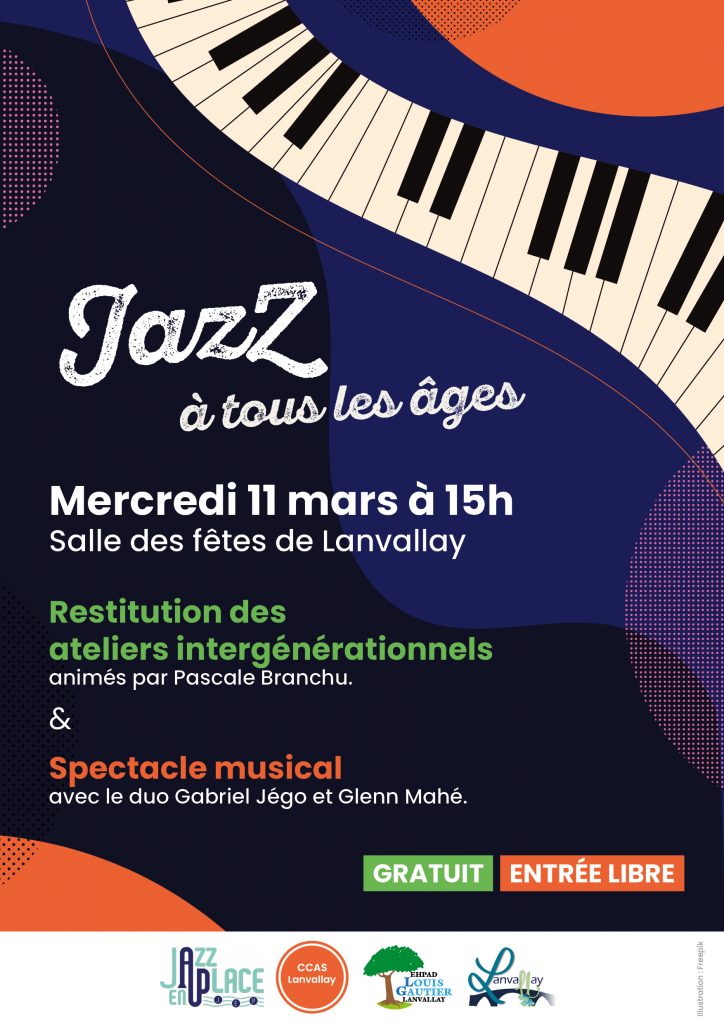 Jazz à tous les âges se décline cette année à Lanvallay en partenariat avec L’EHPAD Louis Gautier, le CCAS et l’ALSH (accueil de loisirs sans hébergement) le mercredi 11 Mars à la salle des fêtes.
